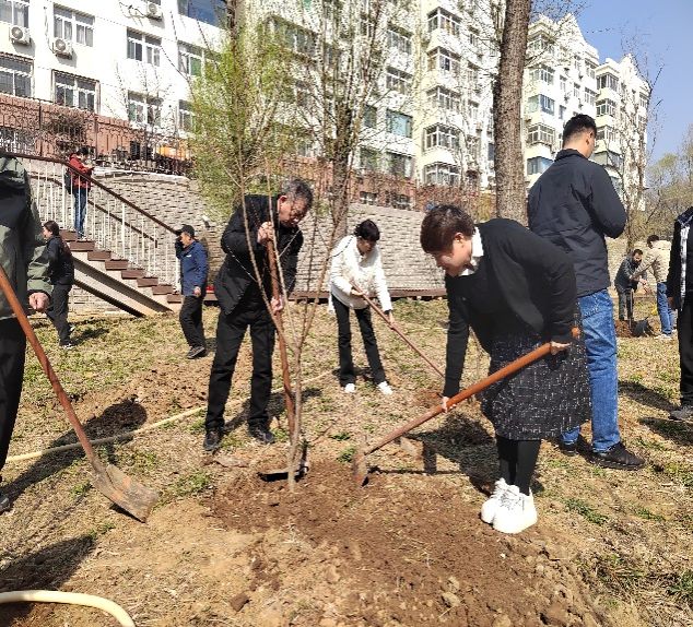 活动现场,党员同志们热情高涨、分工协作,挥锹挖坑、扶苗填土、浇水定根,每一道工序都一丝不苟、规范有序。大家相互配合、干劲十足,原本空旷的场地很快便栽满了一株株生机盎然的树苗,为校园环境增添了一抹新装。在植树过程中,党员们一边劳作,一边交流生态文明建设理念,畅谈后勤服务保障工作与绿色校园建设的紧密联系,在劳动中强化了责任意识,凝聚了支部合力。